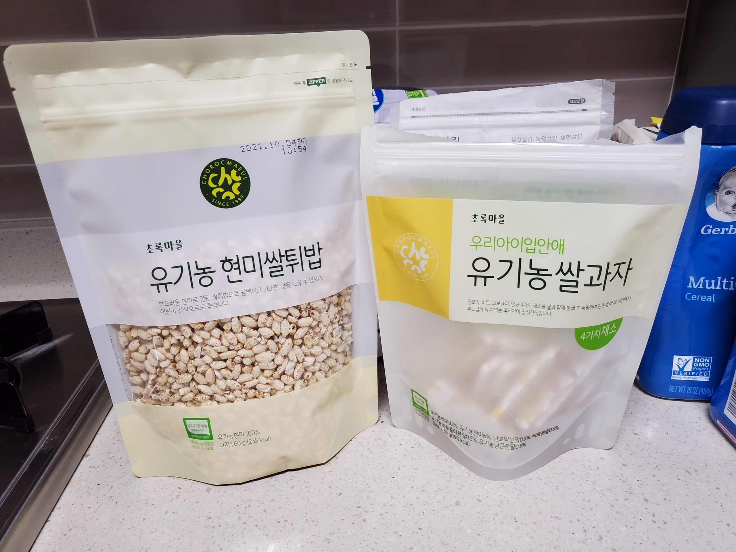 유기농 현미쌀튀밥과 유기농 쌀과자를 구매했어요.