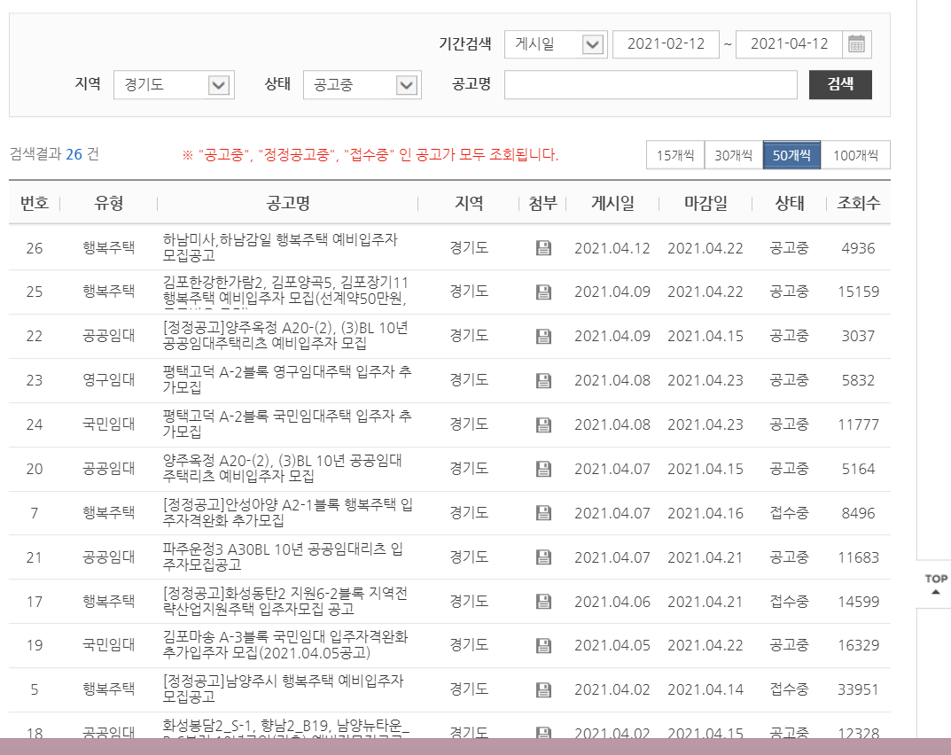 최근에는 경기도 공고가 많이 올라오고 있습니다.