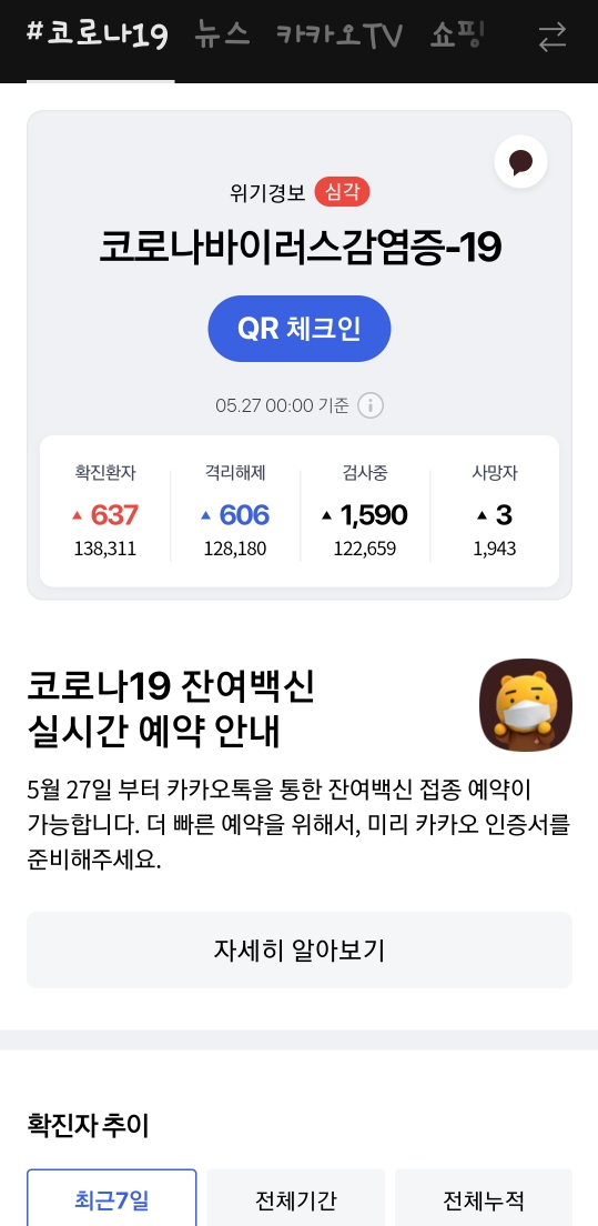 2. 카카오톡 앱을 통해 잔여백신 알아보기