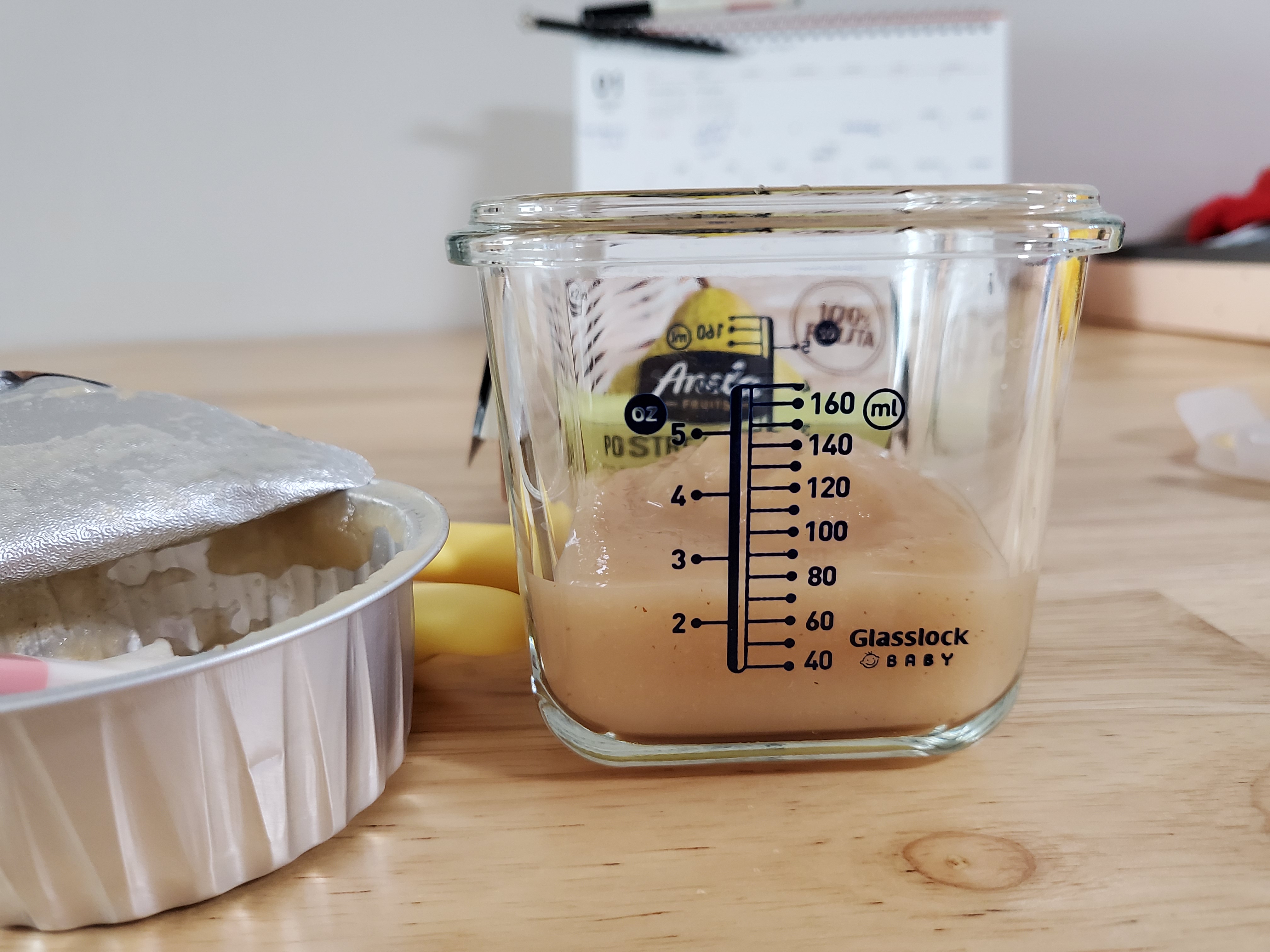 저번에 배 퓨레 잘 먹어서 자신 있게 뜯어줬더니