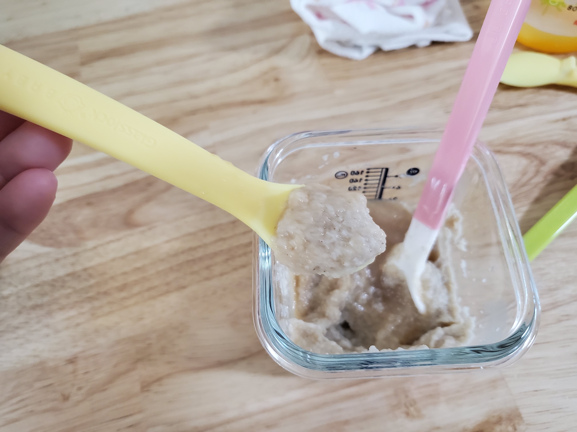쌀 이유식이랑 거버오트밀 이유식도 같이 먹고 있어요. 거버오트밀 하루 권장량 15g 이면