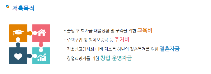 - 저축을 통해 졸업 후 학자금 대출상환 및 구직을 위한 교육비