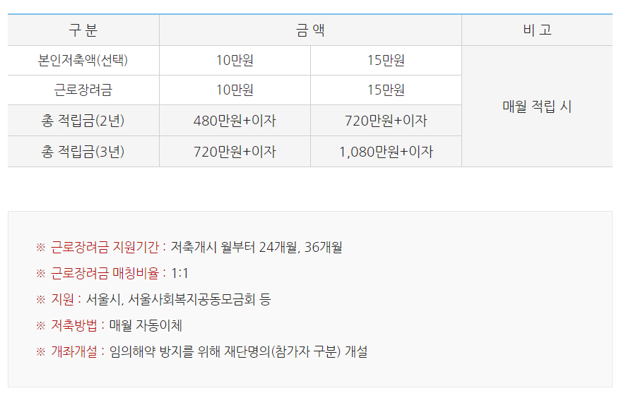 저축하는 금액의 동일한 금액을 서울시 예산 및 시민의 후원금 등으로
