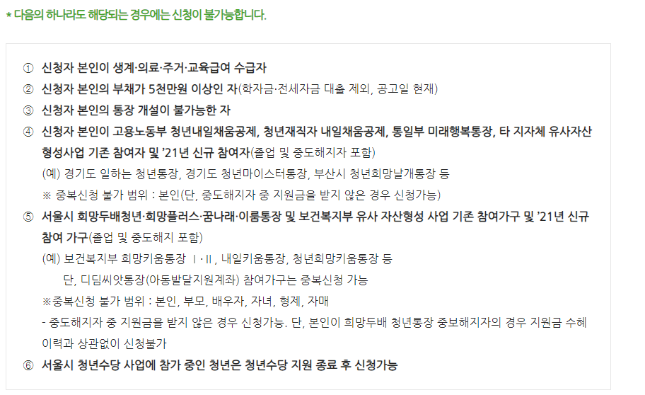 다음 하나라도 해당되는 경우 신청이 불가능하다고 하니
