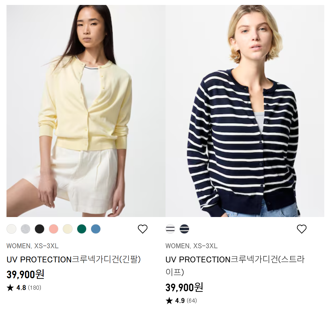 2. 🧥 UV PROTECTION 크루넥가디건(긴팔) – 자외선 차단과 에어컨 대비까지