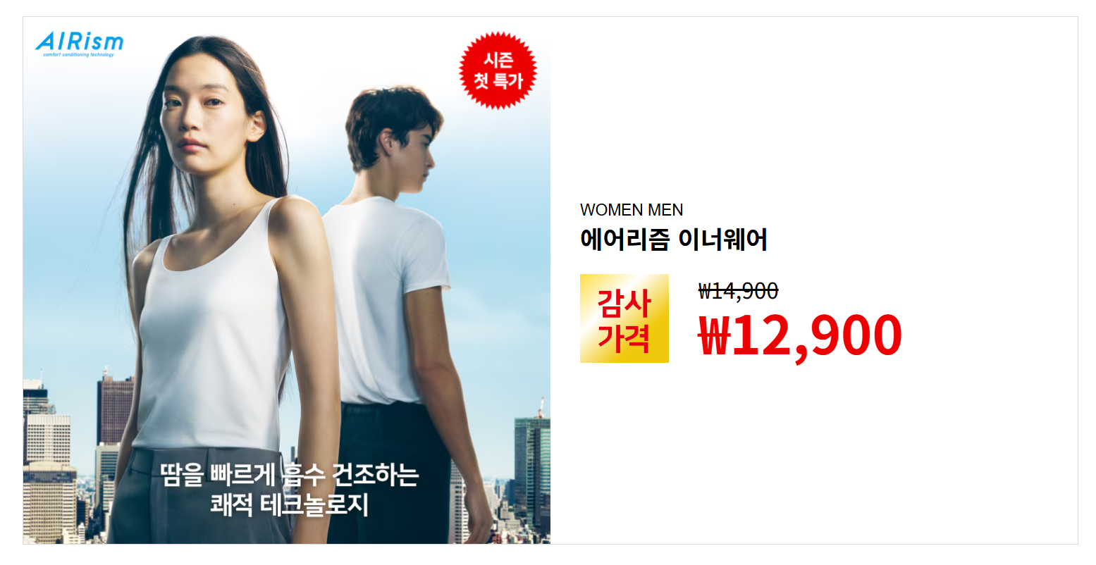 에어리즘은 유니클로의 대표 여름 라인업이에요.