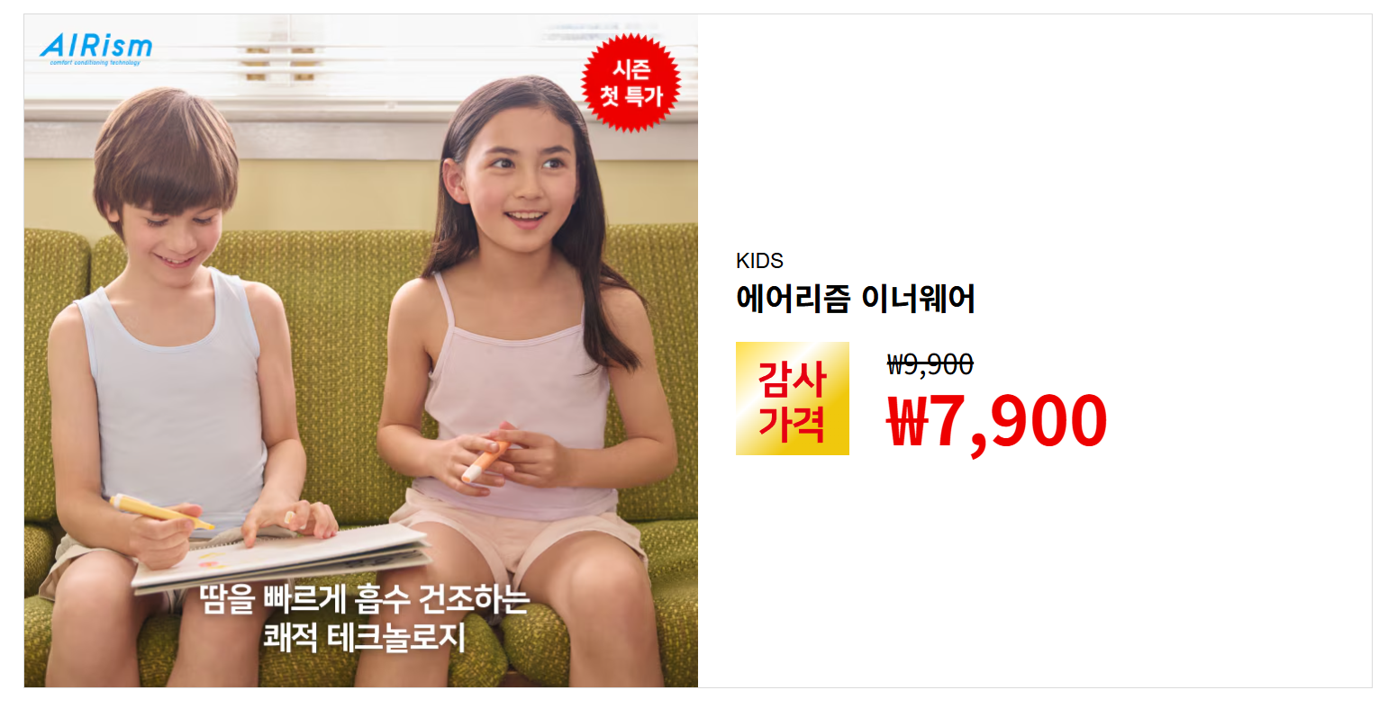 4. 👕 키즈 에어리즘 이너웨어 – 여름 교복템 그 자체