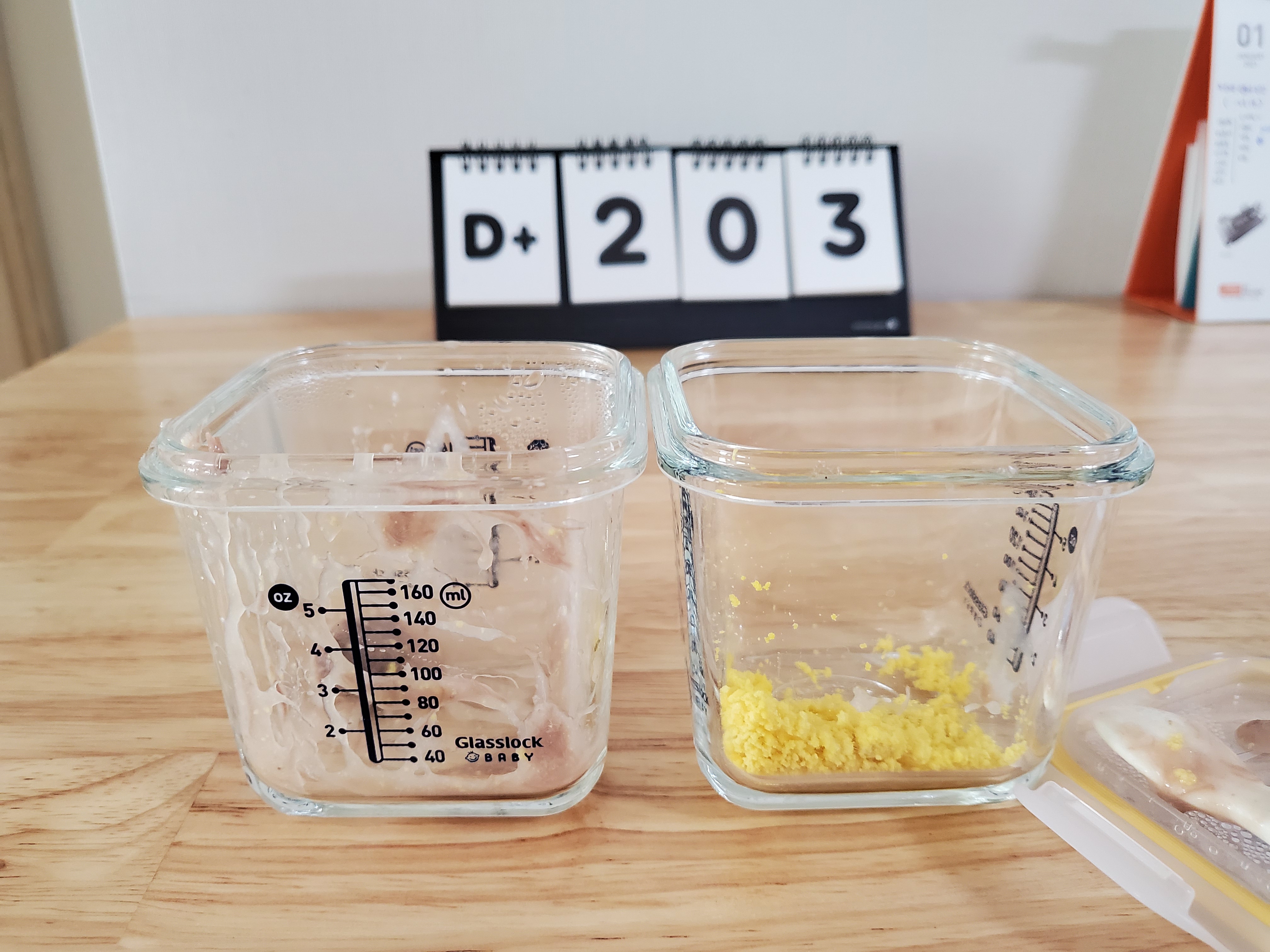 오늘 첫번째 이유식은 잘~ 먹었다.