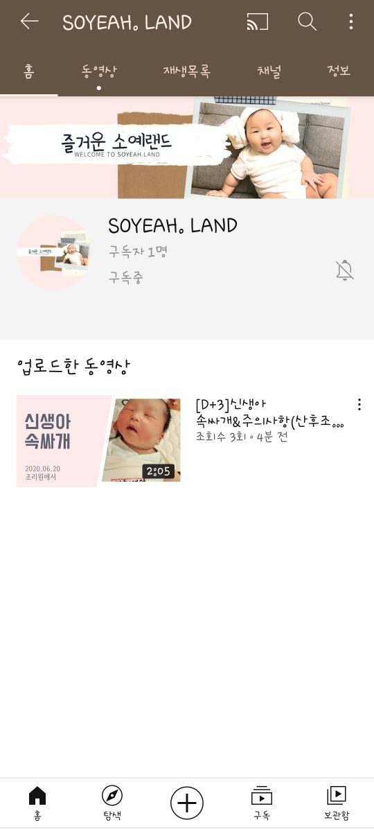 우리 아기는 유튜브로 기록해 주려고 한다.