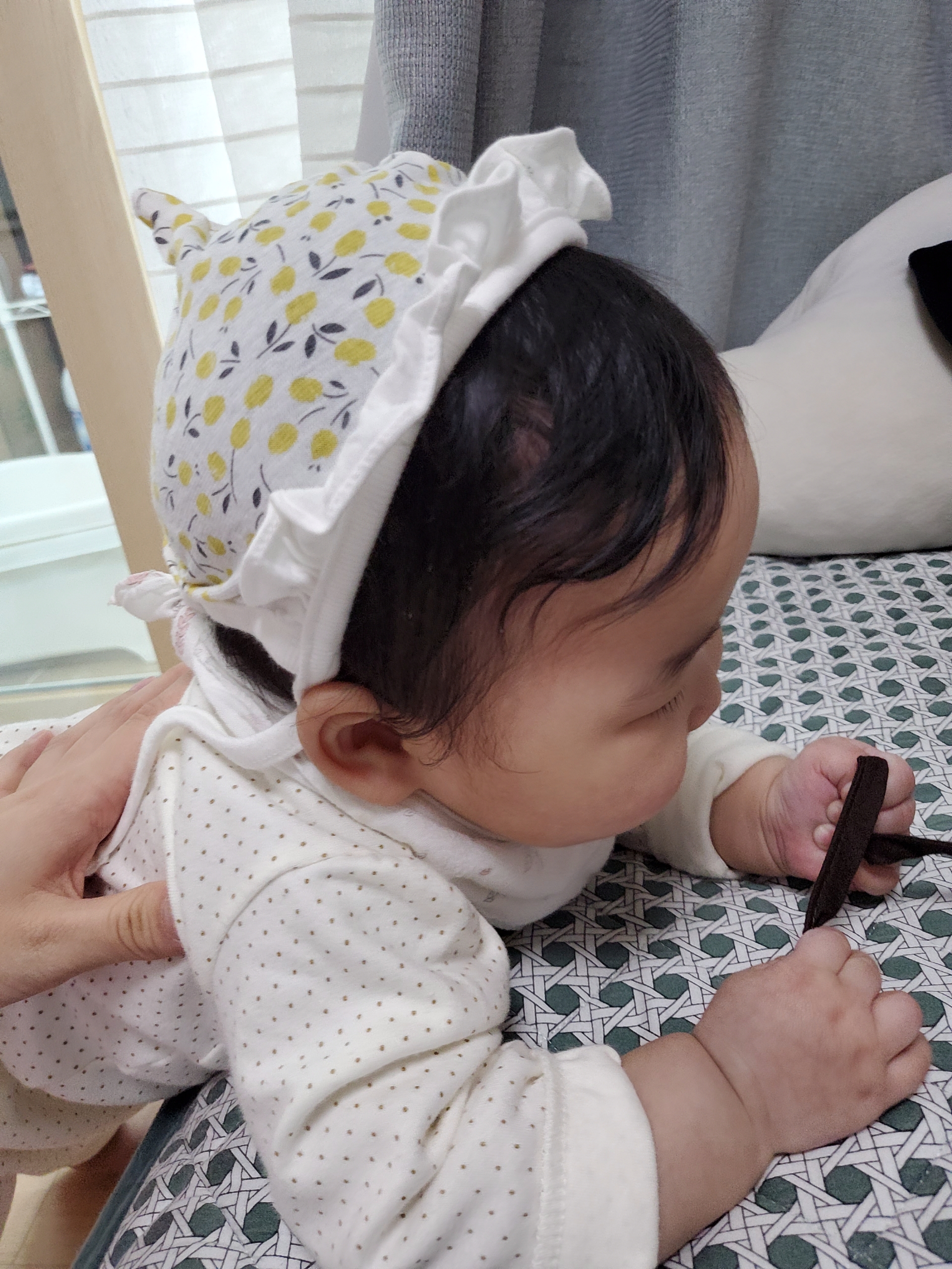 추억의 신생아 때 쓰던 모자를 써봤는데
