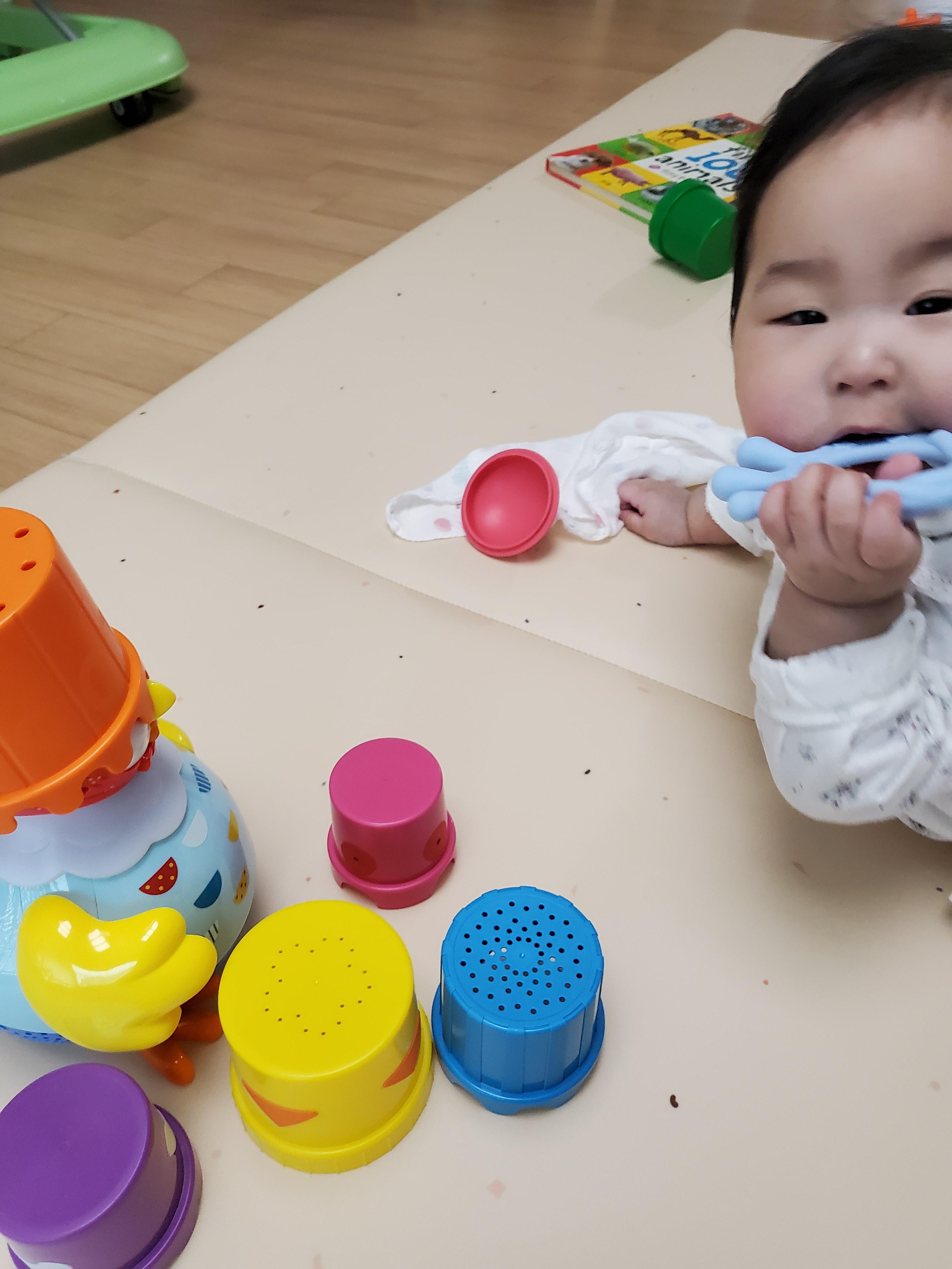 7개월 아기에게 컵 쌓기는 무리이지만
