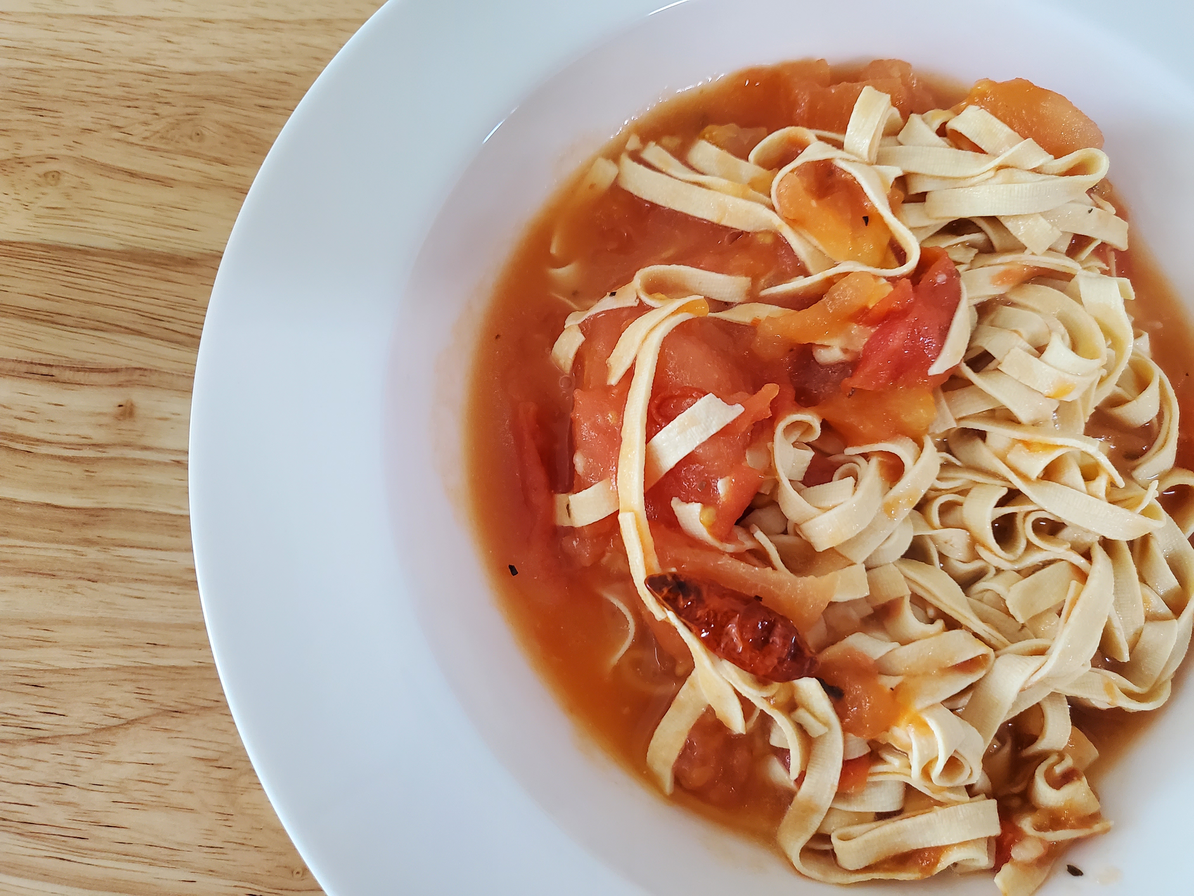 생토마토 1개와 올리브유,페퍼론치노, 약간의 알리오올리오 소스를 이용해서 요리했다.