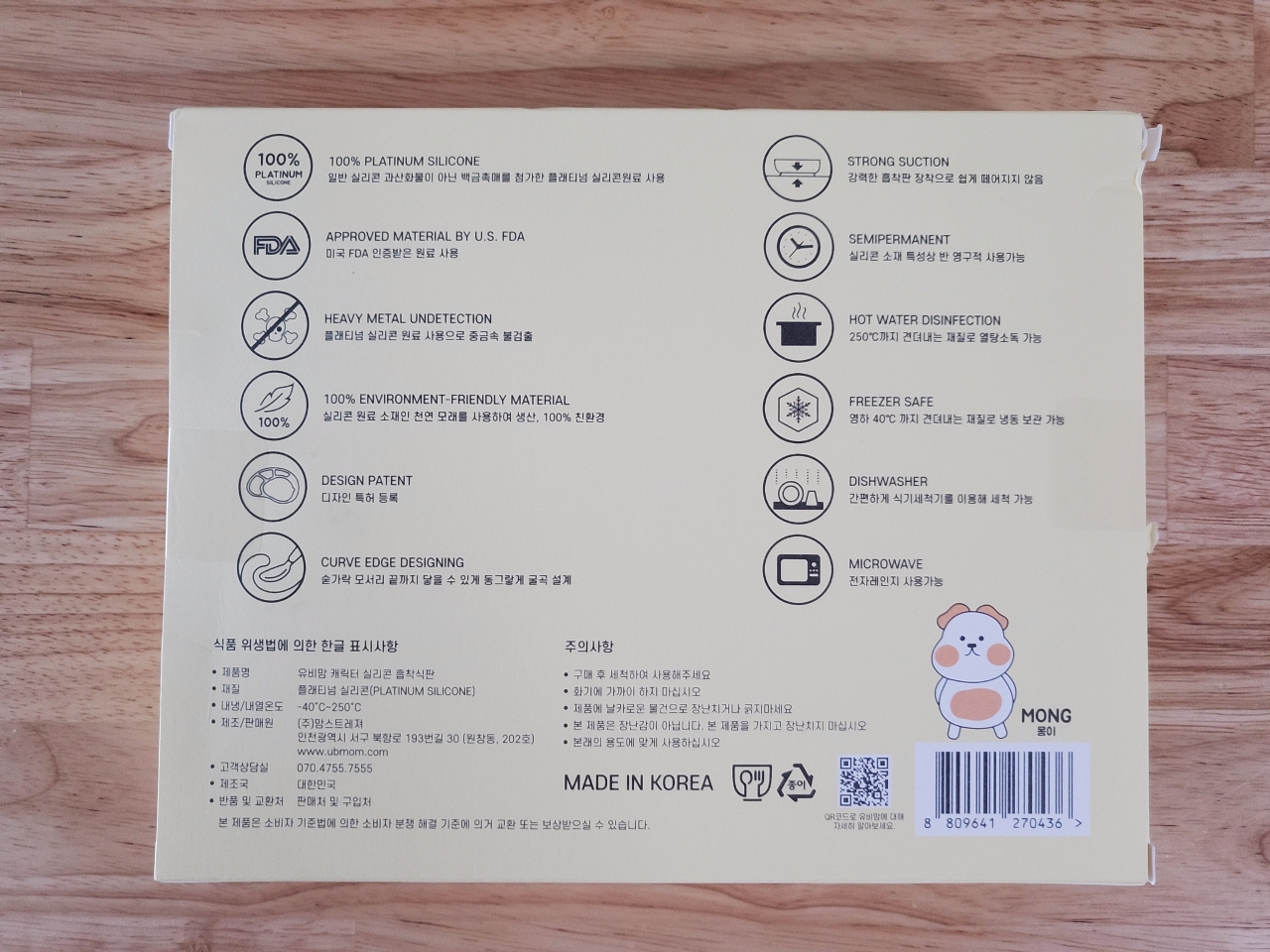 유비맘 캐릭터 실리콘 흡착식판이에요.
