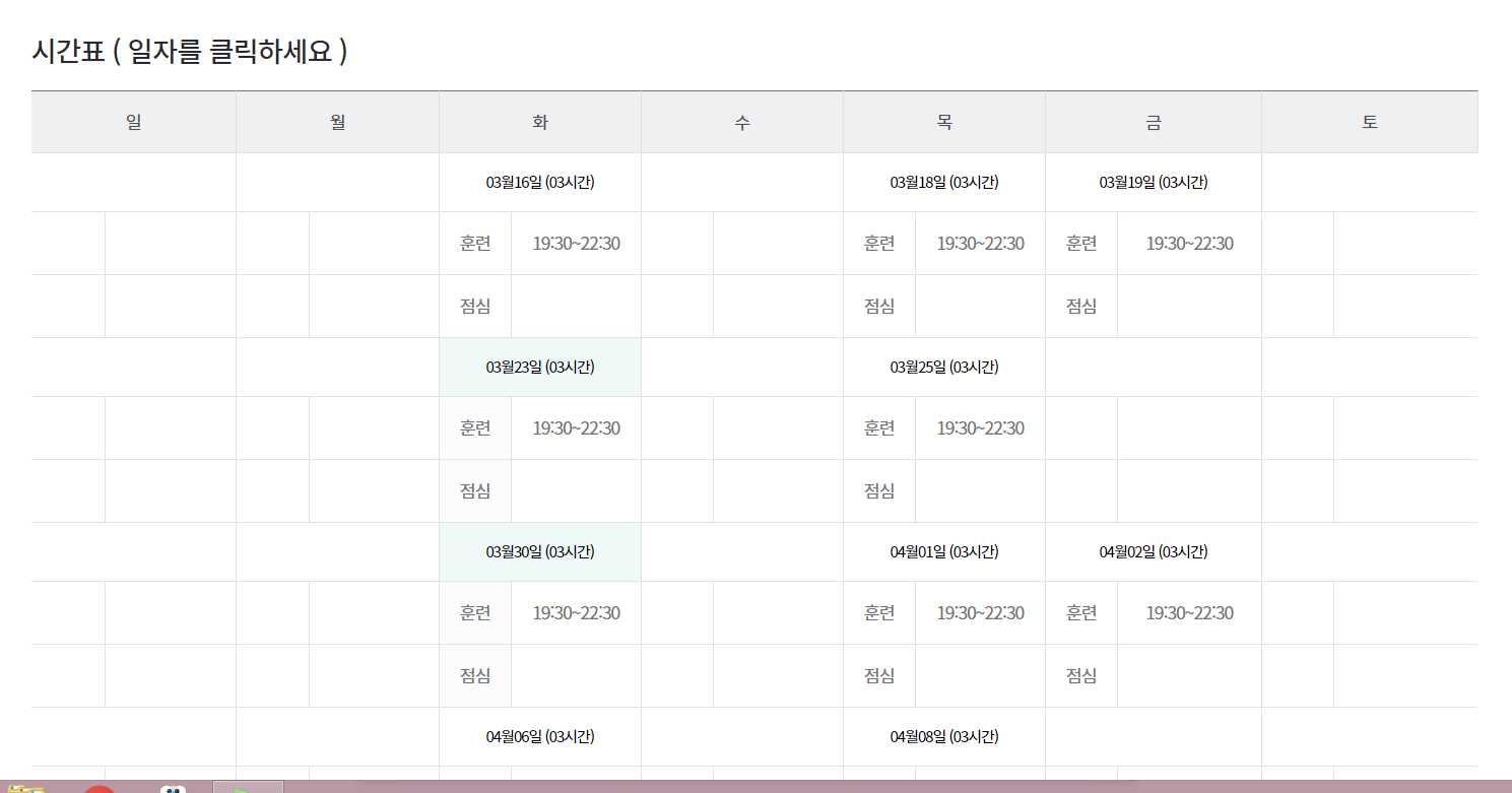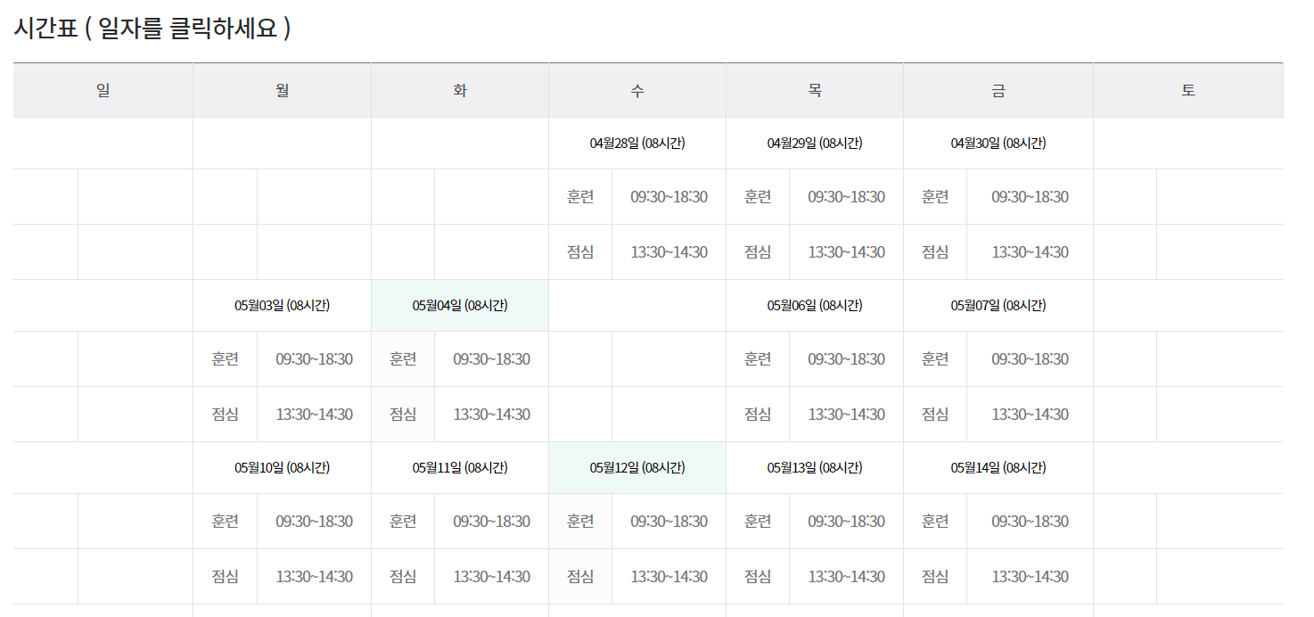 각 과정마다 이렇게 시간표도 미리 볼 수 있어요.