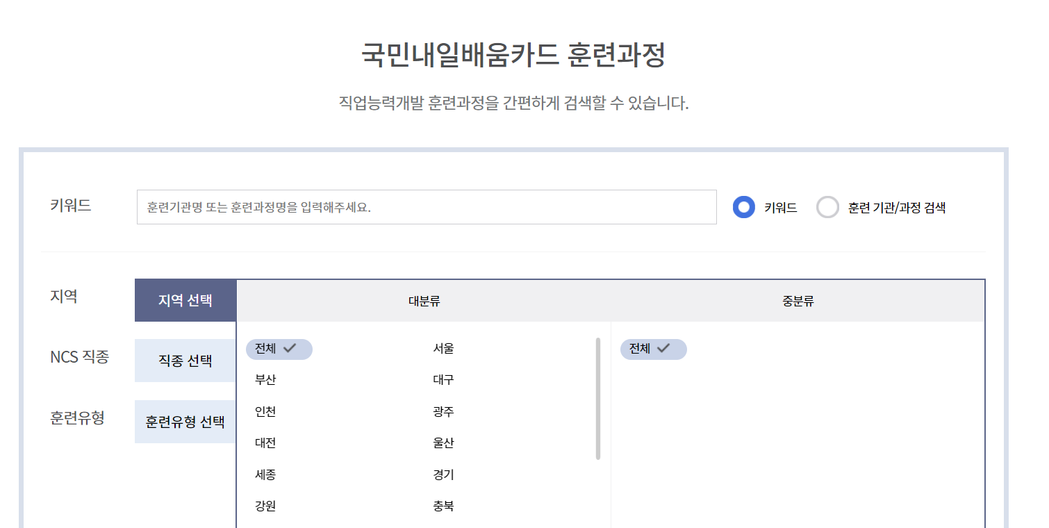 자신이 갈 수 있는 지역의 과정을 검색해 보세요.