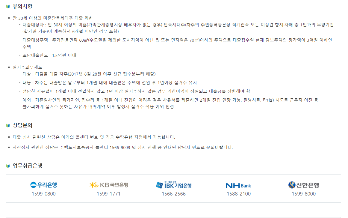 주택구입자금 대출에 대한 정보입니다.
