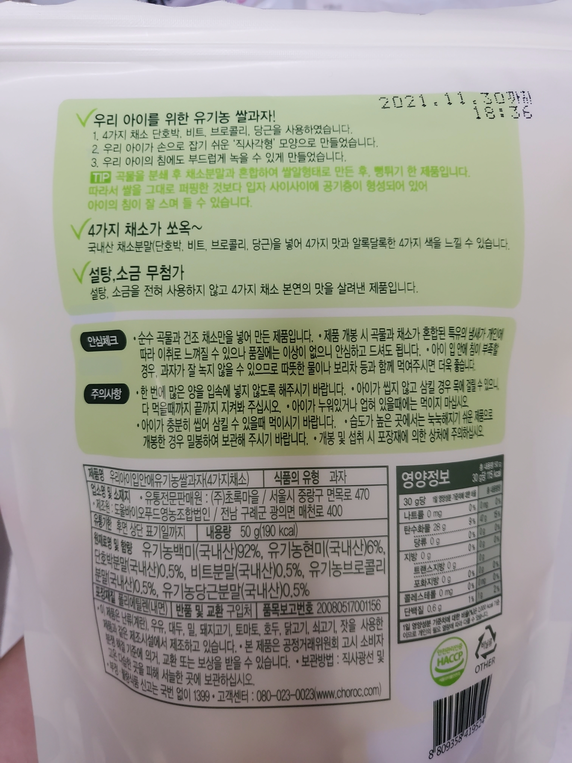 아기 과자는 특히 영양정보를 꼼꼼히 보게되요.