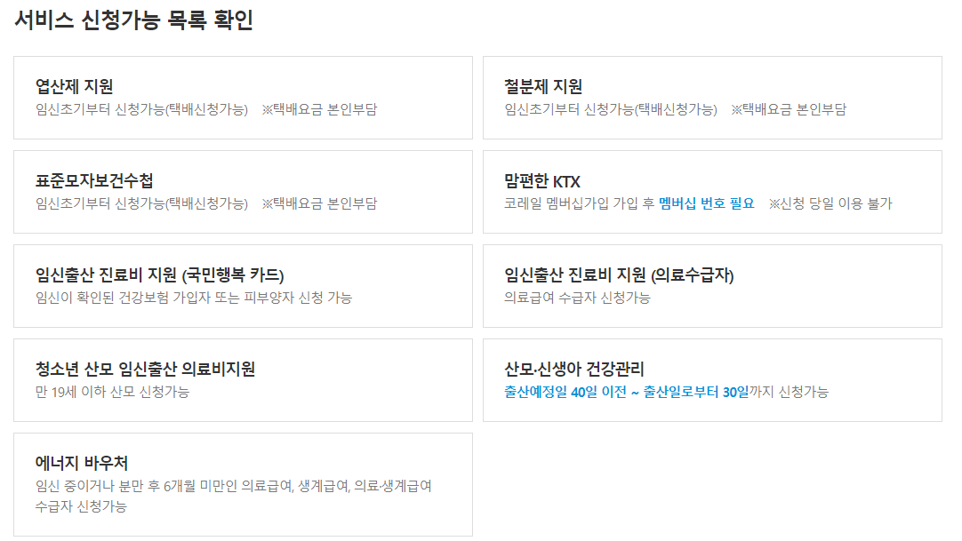 각종 임신지원 서비스를 온·오프라인을 통해 한 번에 안내받고 통합신청까지 할 수 있는 제도입니다.