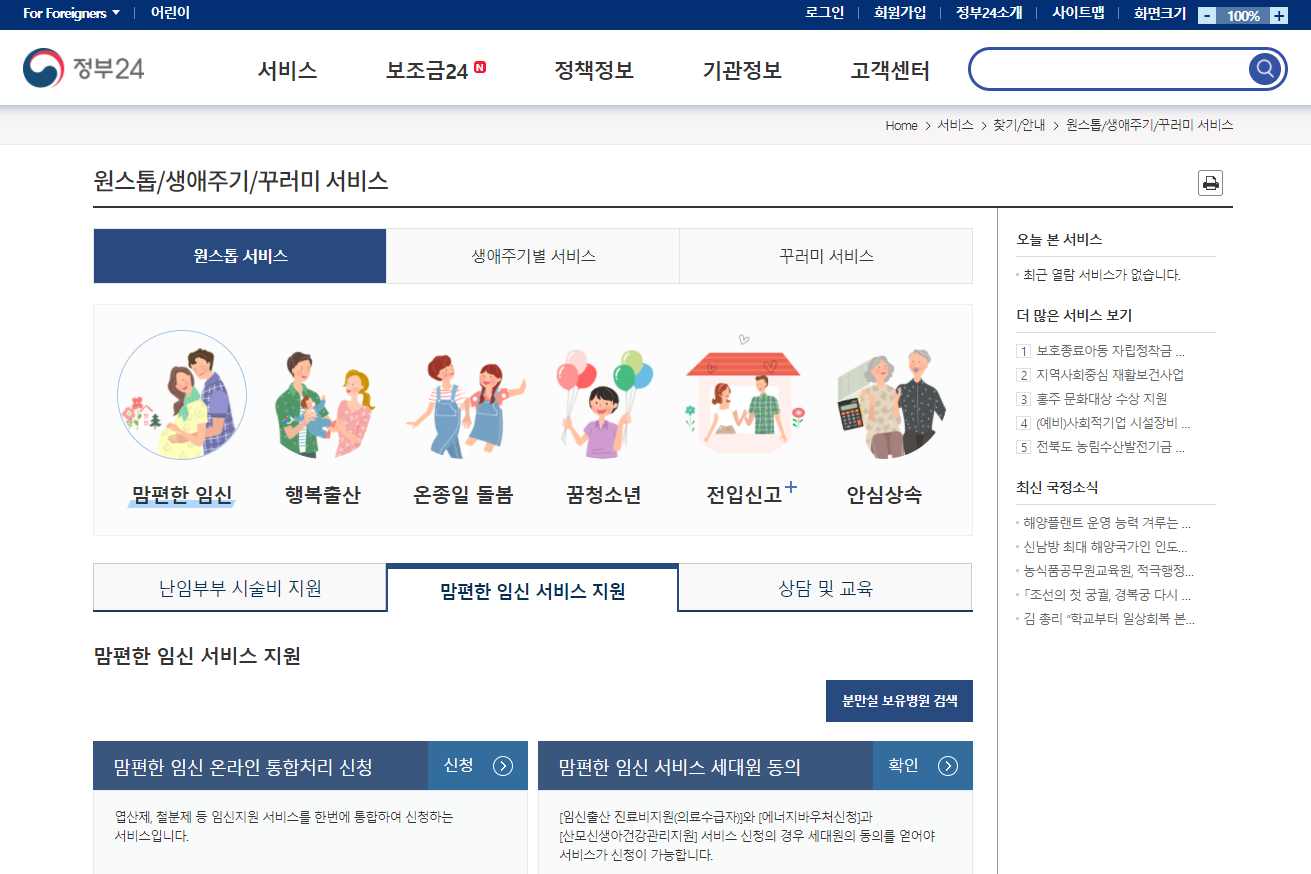 맘편한 임신 원스톱 서비스는 정부24 홈페이지 또는