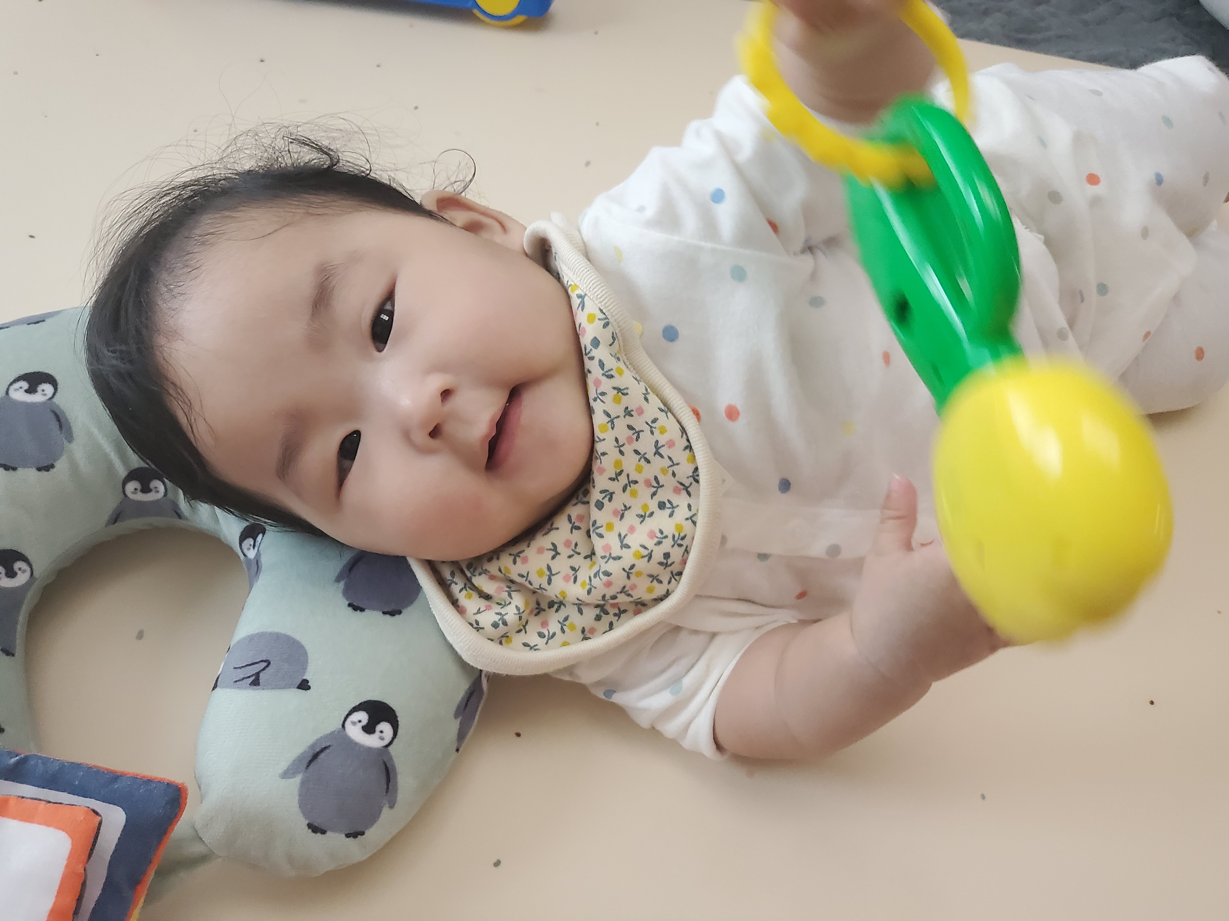 누워만 있던 아기가 나날이 발전 하고있다.