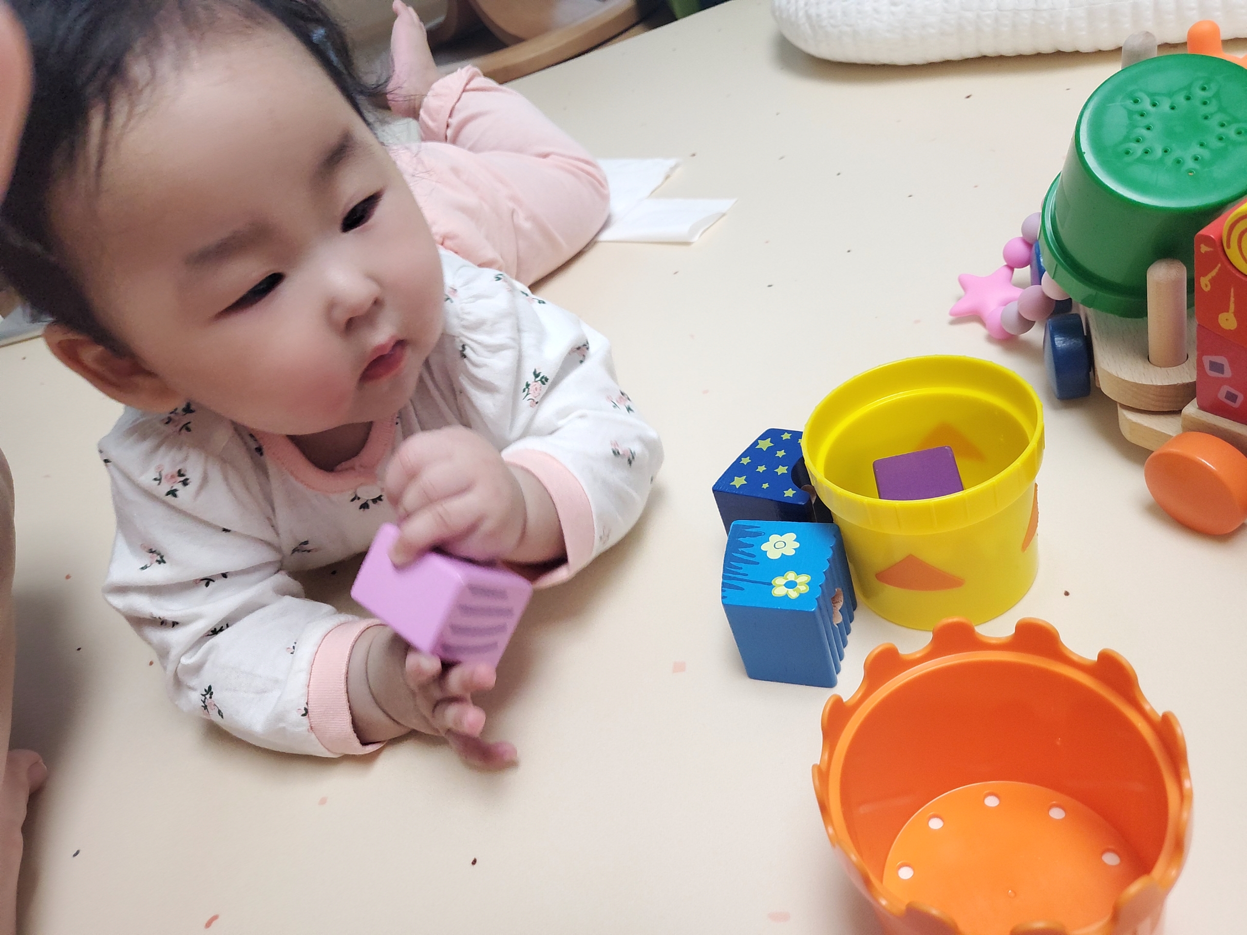 7개월 아기에게 컵 쌓기는 무리이지만