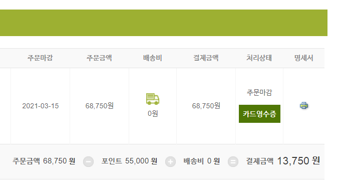 농산물 비중이 50%이상 되도록 주문해야합니다.